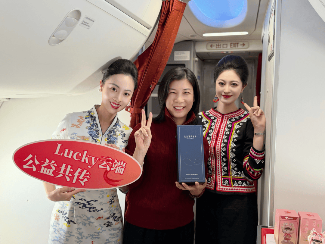 “欢迎搭乘祥鹏航空‘Lucky云端,公益共传’ 共赴爱心新程主题航班。作为植根云南的航空公司,我们始终致力于将云南的温暖与善意,通过每一次飞行传递得更远。”活动在主持人亲切的声音中拉开序幕。