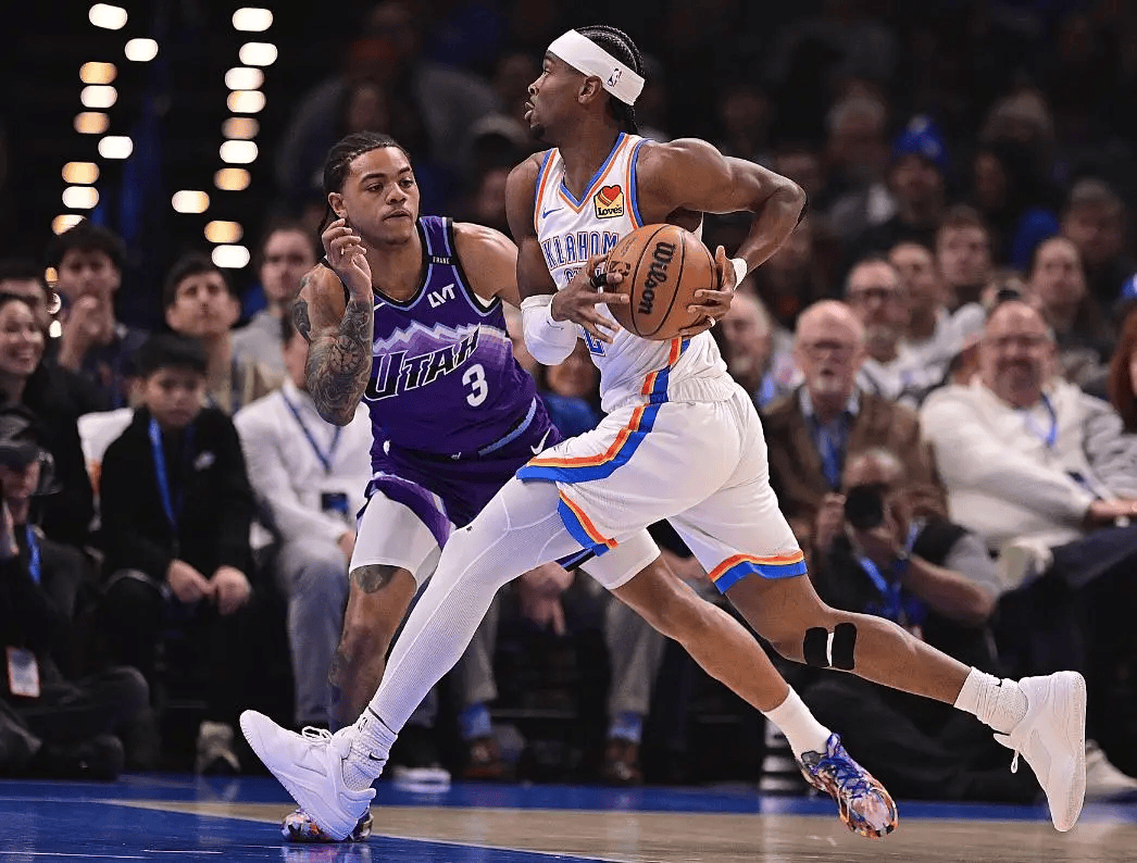 比赛一开始,雷霆那状态,简直就像开了挂一样,一路高歌猛进。在比赛初段,他们就迅速占据了绝对优势,把爵士打得有点找不着北。第二节还剩9分钟的时候,雷霆以47 - 27的比分遥遥领先,我当时心里那个美啊,心想:“这比赛稳了,雷霆肯定能轻松拿下。”毕竟20分的分差可不是个小数目,在篮球比赛里,这么大的优势往往就意味着胜利在望。